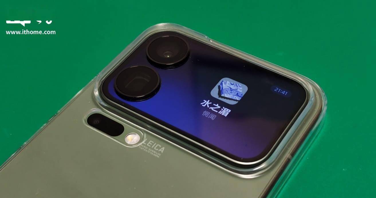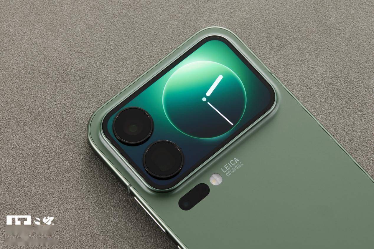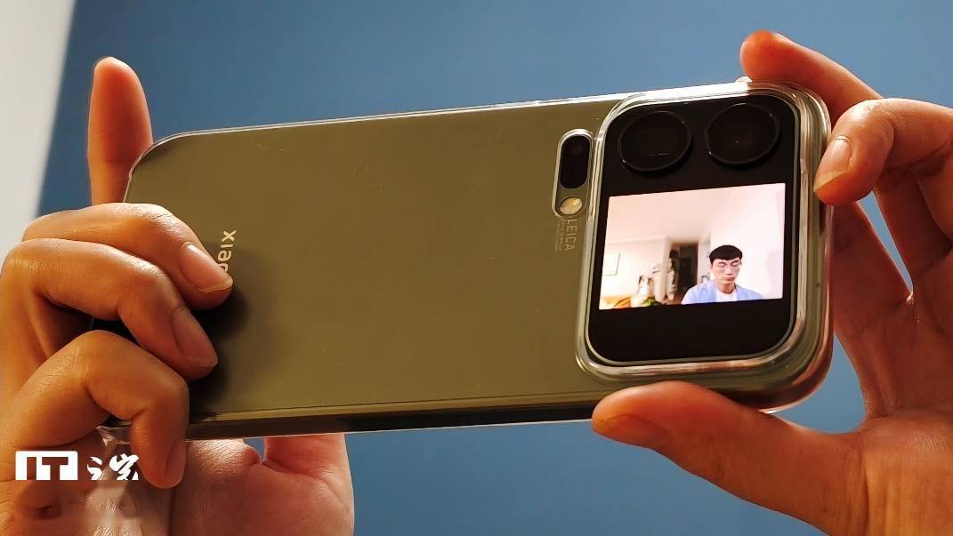 两枚主摄 + 长焦镜头“镶嵌”在妙享背屏中,和相机模组整体巧妙融合。而在妙享背屏下方则是超广角镜头和闪光灯,右侧是 LEICA 的相机标识文案。